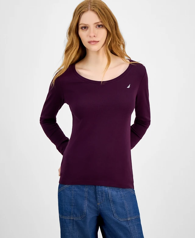Nautica Jeans Women's Cotton Scoop-Neck Long-Sleeve T-shirt, Online Only
