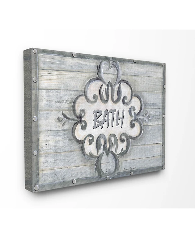 Stupell Industries Home Decor Collection Bath Gray Bead Board with Scroll Plaque Bathroom Canvas Wall Art, 16" x 20"