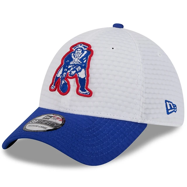 Men's New Era White/Royal New England Patriots 2024 NFL Training Camp 39THIRTY Flex Hat