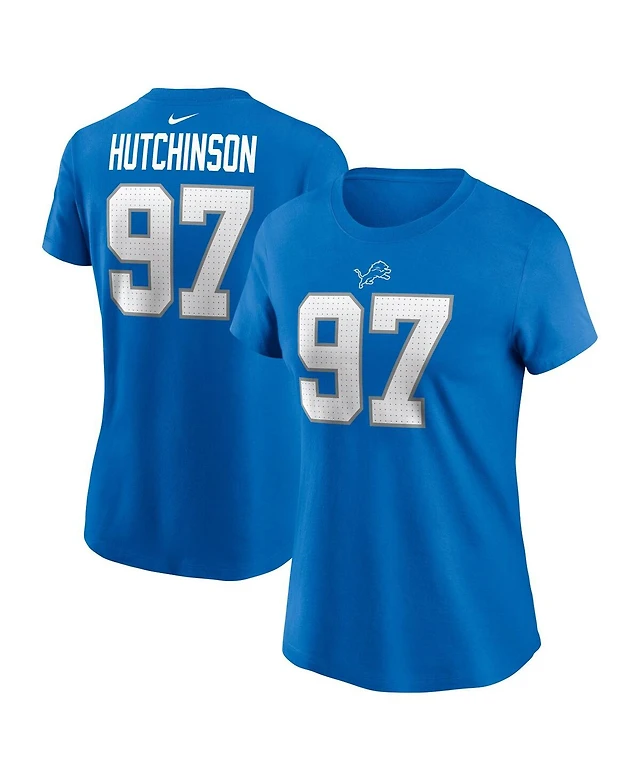 Nike Women's Aidan Hutchinson Blue Detroit Lions Player Name Number T-Shirt