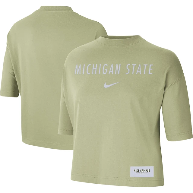 Nike Women's White Michigan State Spartans Color-Block Oversized Cropped Pullover Sweatshirt
