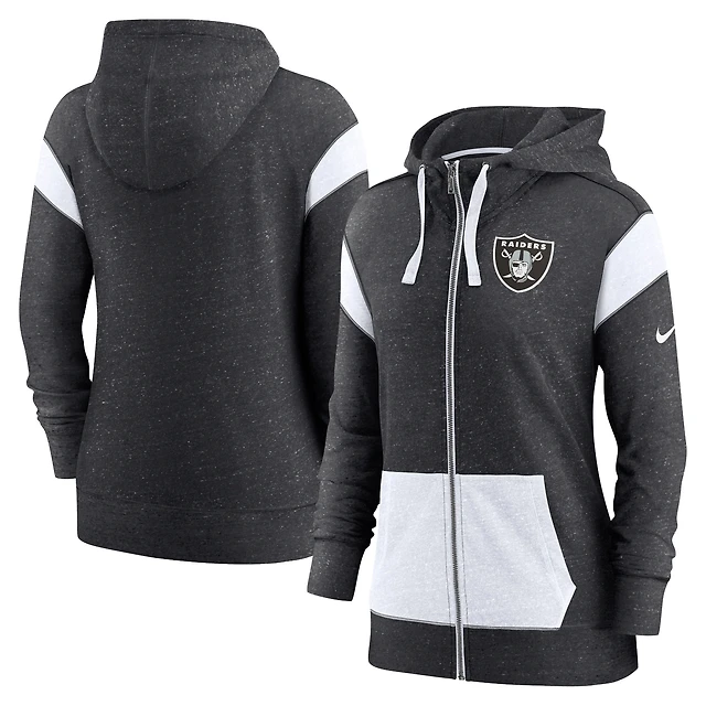 Women's Nike Heather Black/White Las Vegas Raiders Plus Size Monaco Full-Zip Lightweight Hoodie