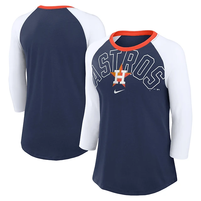 Women's Nike Navy/White Houston Astros Knockout Arch 3/4-Sleeve Raglan Tri-Blend T-Shirt