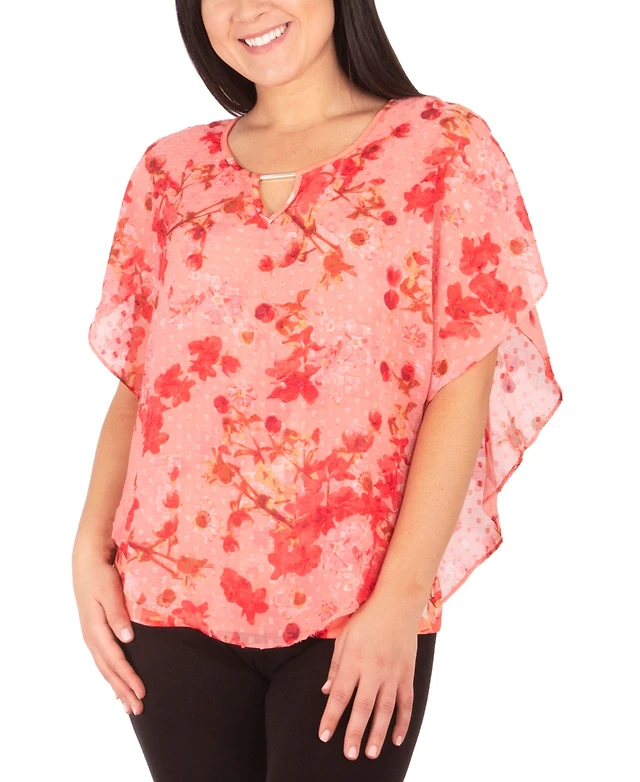 Ny Collection Plus Chiffon Poncho Top with Ring