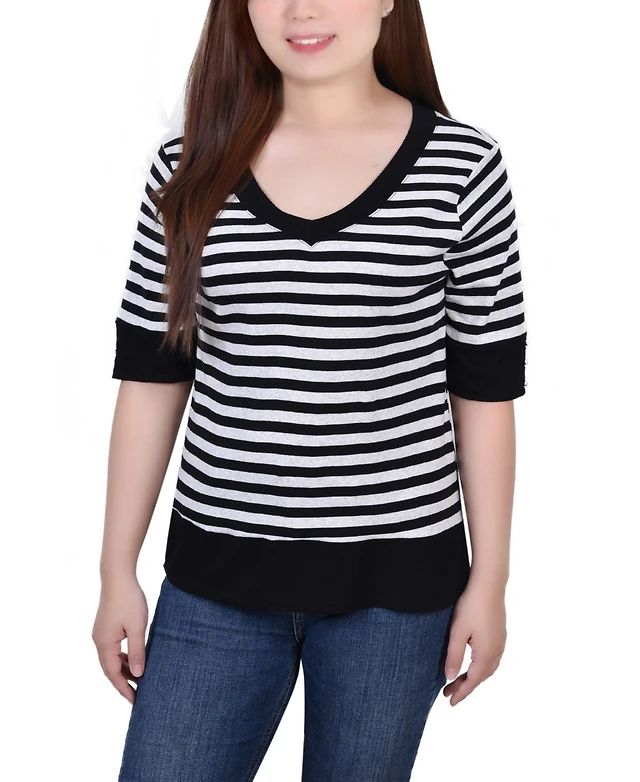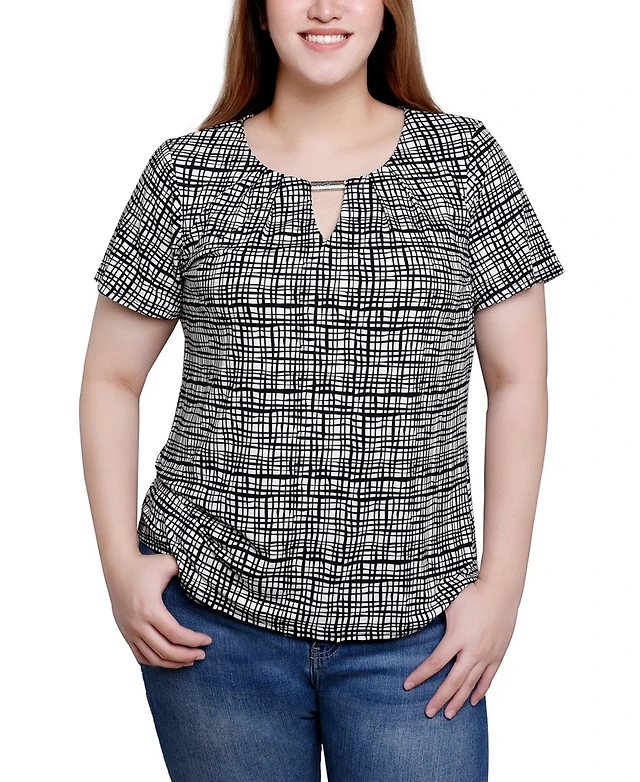 Ny Collection Women's Short Sleeve Top with Ring Details