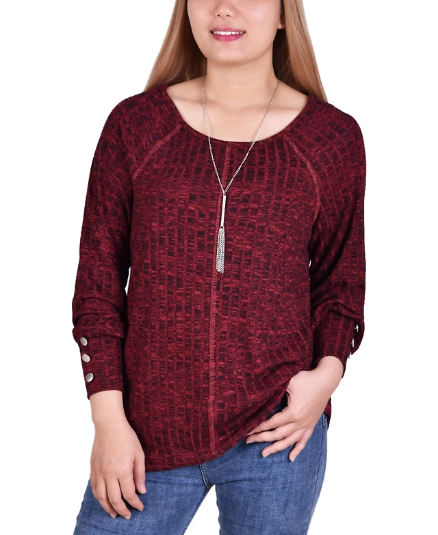 Ny Collection Petite Raglan Sleeve Top with Chain Details