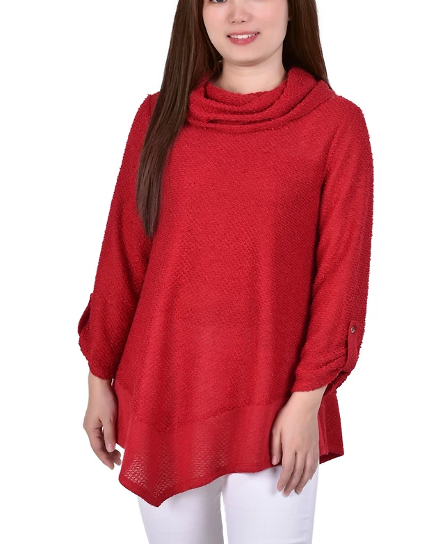 Ny Collection Petite Cowlneck V-Hem Sweater