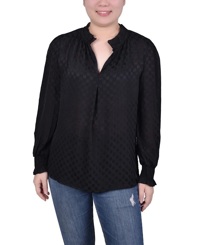 Ny Collection Petite Long Sleeve Dobby Blouse