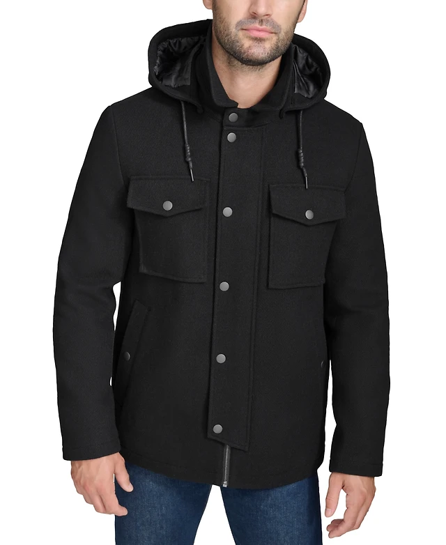Xray Men's Pu Leather Jacket With Hood And Faux Shearling Lining