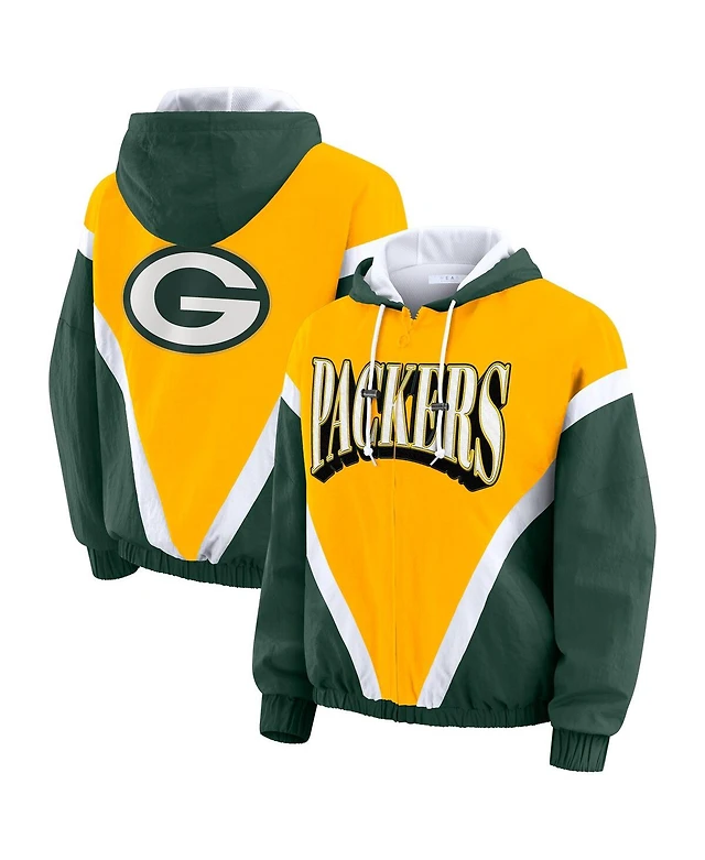 Wear by Erin Andrews Women's Kelly Green/Black New York Jets Retro Crinkle Full-Zip Hoodie Windbreaker Jacket