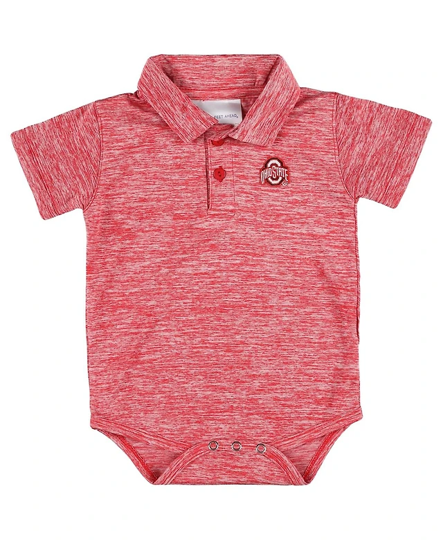 Newborn Infant Boys and Girls Scarlet Ohio State Buckeyes Bumpo Football Logo Romper