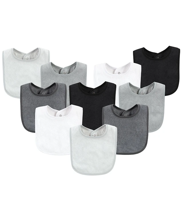 Hudson Baby Unisex Baby Rayon from Bamboo Bib with Waterproof Lining 10pk, Gray White, One Size