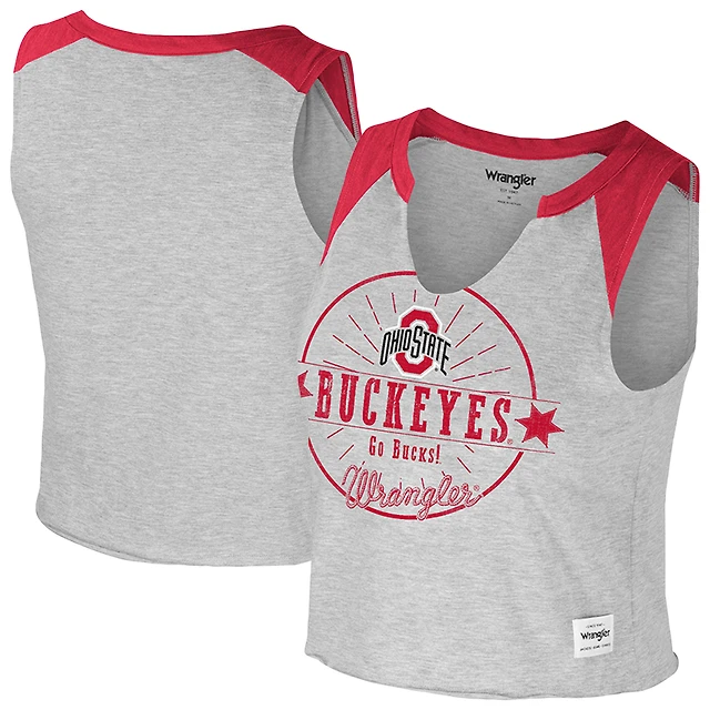 Women's Colosseum x Wrangler Heather Gray Ohio State Buckeyes Vintage Muscle Cropped T-Shirt