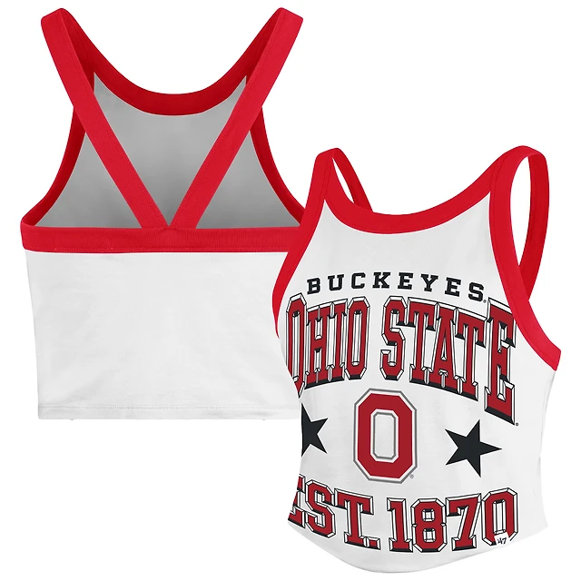 Pressbox Women's White/Scarlet Ohio State Buckeyes Tracy Racerback Burnout Tank Top