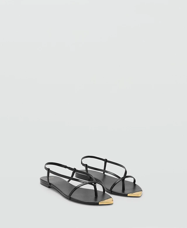 Mango Women's Strap and Contrasting Toe Leather Sandals