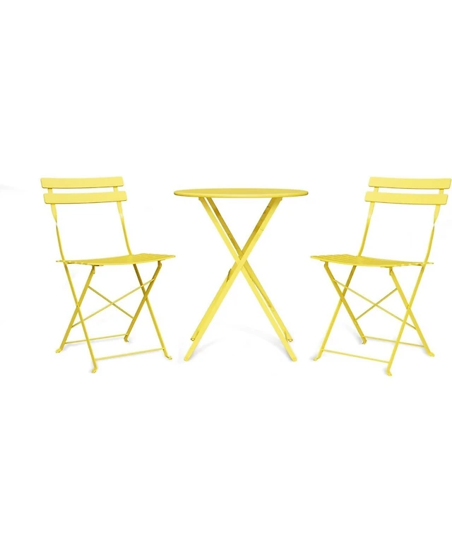 Slickblue Outdoor 3-Piece Folding Bistro Set with Metal Round Table and Chairs – Space-Saving Patio Furniture
