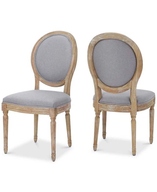 Set of Two Tufted Upholstered Linen Dining Side Chairs with Open Back