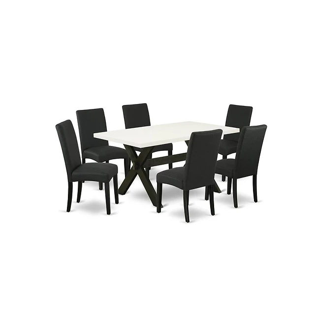 East West Furniture 6-Pc Modern Dining Set- 4 Mid Century Dining Chairs with Black Linen Fabric Seat and Stylish Chair Back