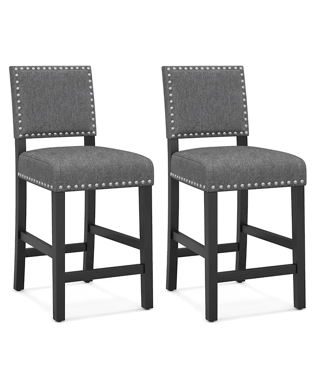 27 Inch Counter Height Bar Chairs with Rubber Wood Legs Set of 2-Beige