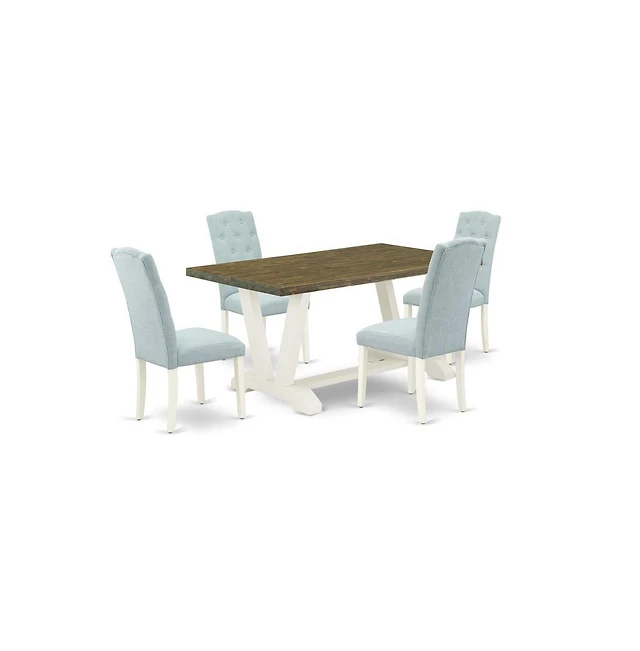 East West Furniture X076CE215-5 5-Pc Dining Table Set- 4 Dining Padded Chairs with Baby Blue Linen Fabric Seat and Button Tufted Chair Back