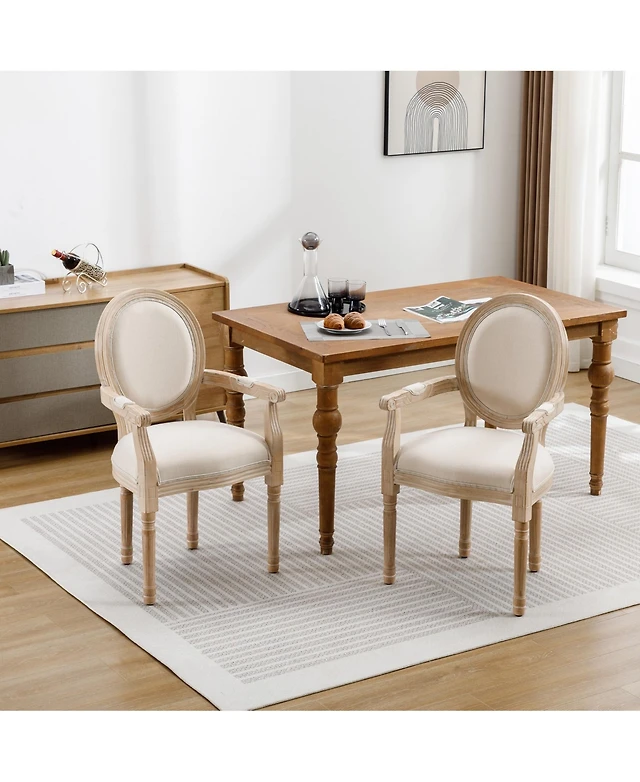 Dyhome Dining Chairs with Curved Backrest, Modern Fabric Upholstered Boucle Kitchen Room Set of 2