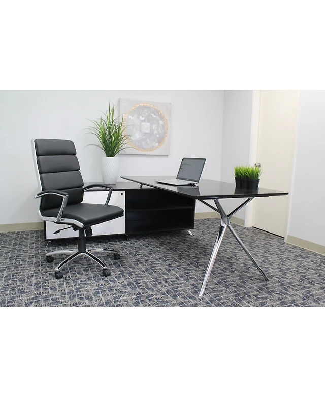 Streamdale Black Marble Pattern Tempered Glass Dining Set - 71"x35.4" with 8 White Pu Chairs With a Widened Backrest Design