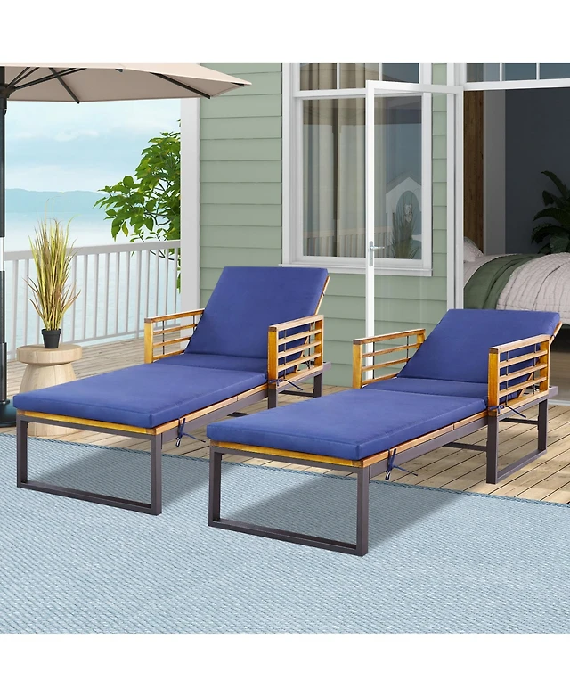 2PCS Patio Cushioned Chaise Lounge Chair Adjustable Reclining Lounger