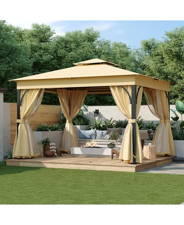 Outsunny 10' x 10' Patio Gazebo Outdoor Canopy Shelter with Aluminum Frame, Double Tier Roof, Netting and Curtains for Garden, Lawn, Backyard and Deck