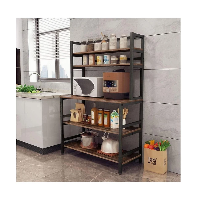 Tribesigns 5-Tier Kitchen Bakers Rack with Hutch, Industrial Microwave Oven Stand, Free Standing Kitchen Utility Cart Storage Shelf Organizer (Rustic