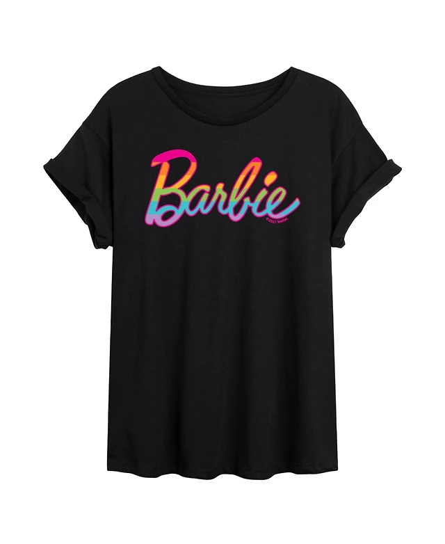 Hybrid Apparel Trendy Juniors Barbie Floral Graphic Oversized Tee