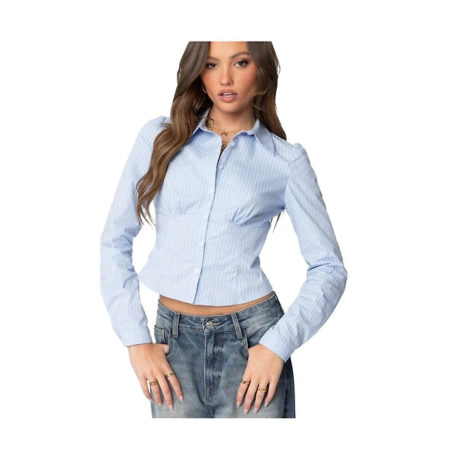 Edikted Women's Pinstripe Linen Look Button Up Shirt