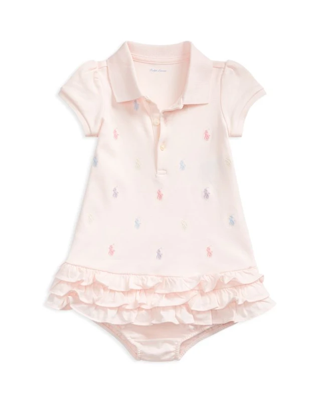 Girls' Ruffled & Embroidered Polo Dress with Bloomers - Baby