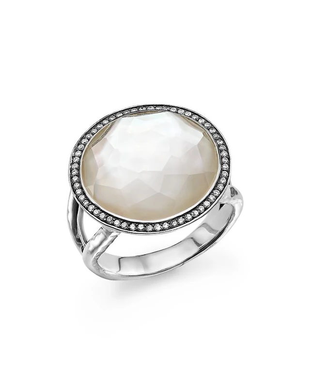 Macy's Mother of Pearl and Cubic Zirconia Beaded Heart Ring (0.144 ct. t.w.) Sterling Silver