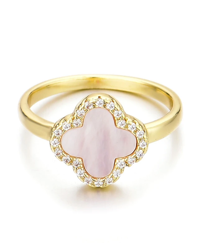 Gigigirl 14k Gold Plated With Mother Of Pearl Cubic Zirconia Beaded Band Stacking Ring