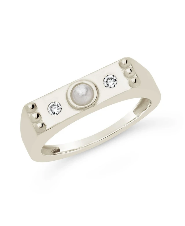 brook & york Baguette Crystals and Mother of Imitation Pearl Inlay Micah Extra Thin Ring