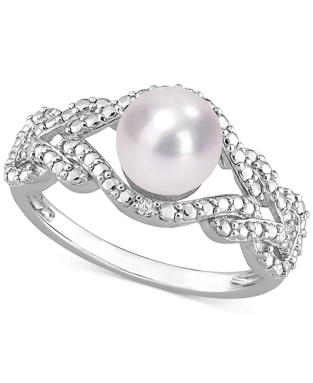 Cultured Freshwater Pearl (7mm) & Diamond (1/20 ct. t.w.) Ring in 14k White Gold