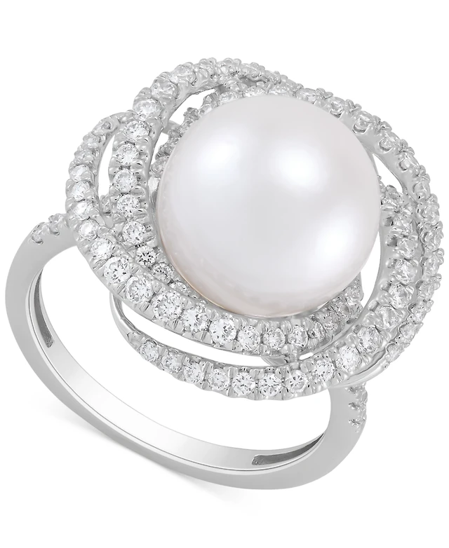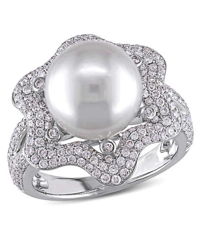 South Sea Cultured Pearl (10-10.5mm) and Diamond (1 ct. t.w.) Floral Halo Cocktail Ring 14k White Gold