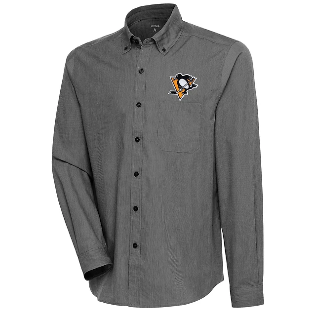 Men's Antigua Black Pittsburgh Penguins Compression Tri-Blend Button-Down Shirt