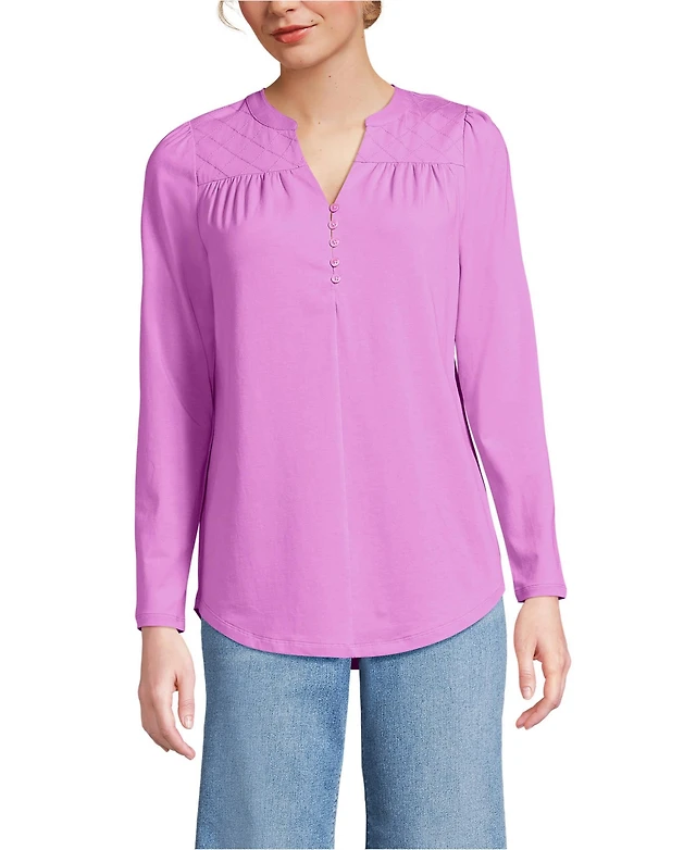 Lands' End Women's Petite Long Sleeve Lightweight Jersey Notch Neck Tunic Top