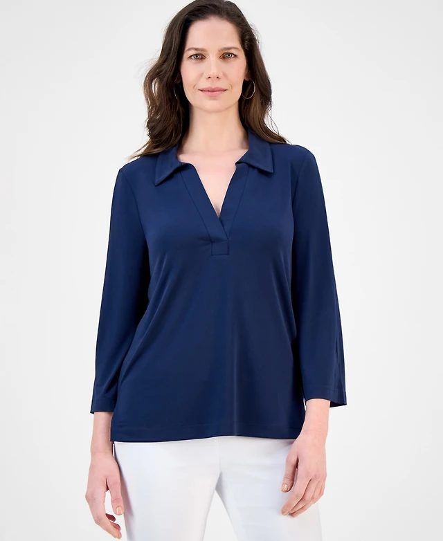 Jones New York Petite Serenity Knit 3/4 Sleeve Tunic Top