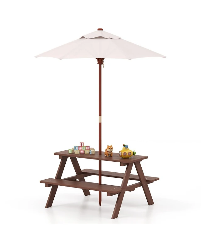 Qaba Kids Picnic Table and Chair Set with Height Adjustable Umbrella,
