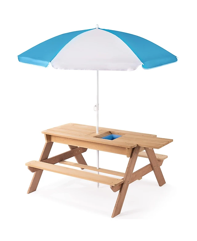 3-in-1 Kids Picnic Table Wooden Outdoor Sand & Water w/Umbrella Play Box es