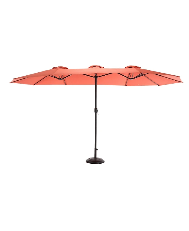 Gymax 15FT Double-Sided Twin Umbrella Sun Shade Outdoor Crank Market Base Patio