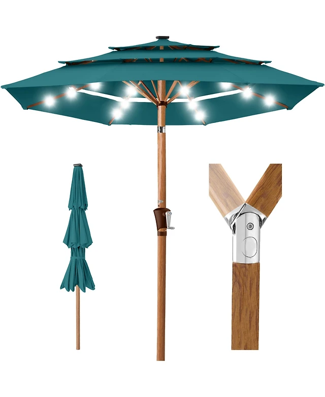9ft Solar Power Led Patio Umbrella Outdoor Yard Parasol Sunshade Tilt with Crank