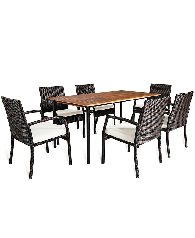 Gymax 3PCS Outdoor Patio Bistro Set Pe Rattan Conversation Set w/ Umbrella Hole