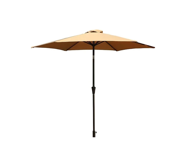 9 Feet Solar Led Lighted Patio Market Umbrella Tilt Adjustment Crank Lift-Tan