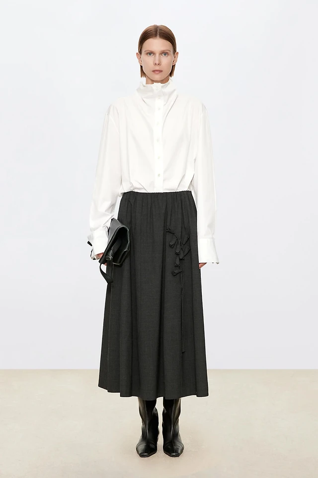European Fine-spun Wool Lily of the Valley Midi Skirt