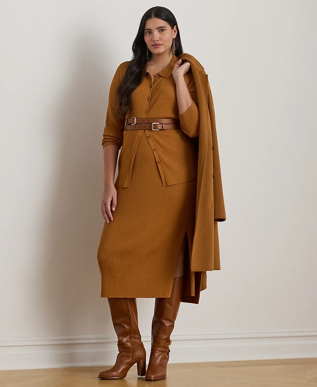 Lauren Ralph Plus Rib-Knit Pencil Midi Skirt