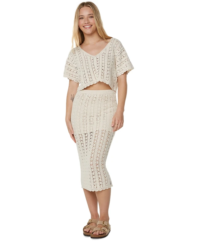 Vince Camuto Womens Metallic Cutout Sweater Midi Skirt