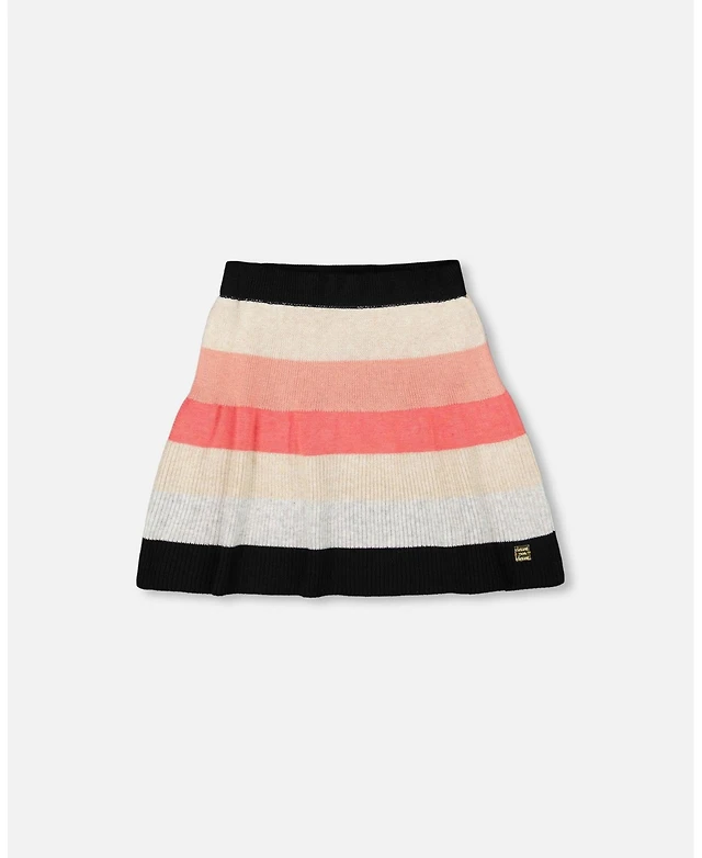 Deux par Girl Striped Knit Skirt Beige Black and Pink - Toddler|Child